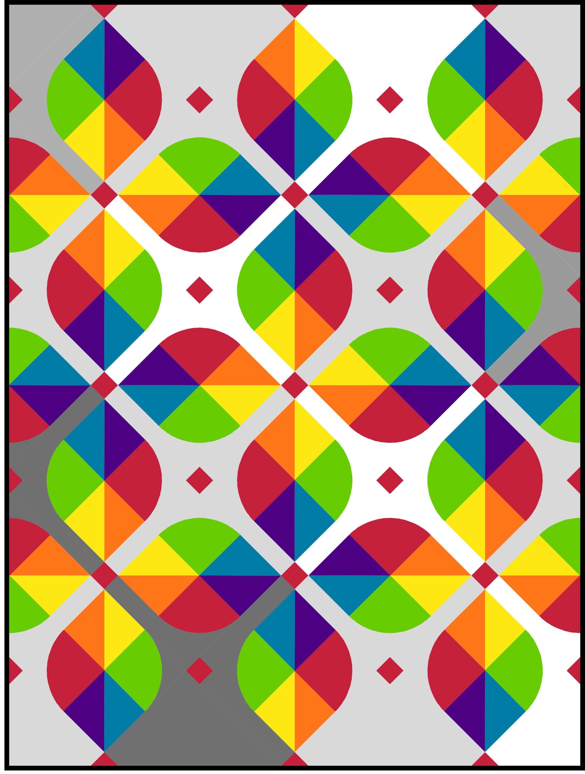 Spin Out is a great quilt for showing off your favorite large scale prints, and it also works well for small scale prints and solids. The pattern includes step by step instructions, illustrations, coloring page and full-scale templates. \\